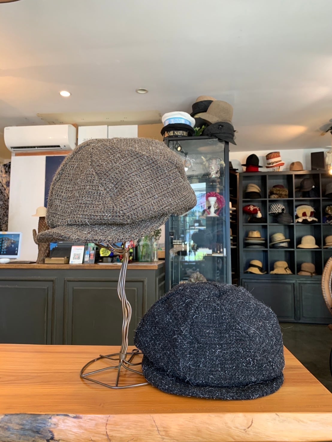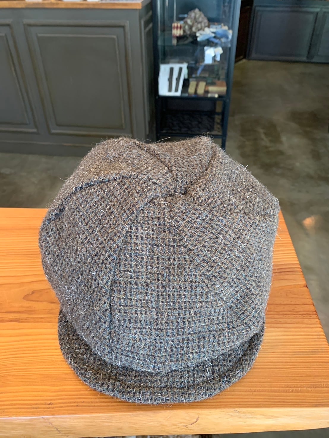 オリジナルで製作したウール生地を使用、クラウンが渦を巻くようなパターンのボリュームのあるキャスケットです。