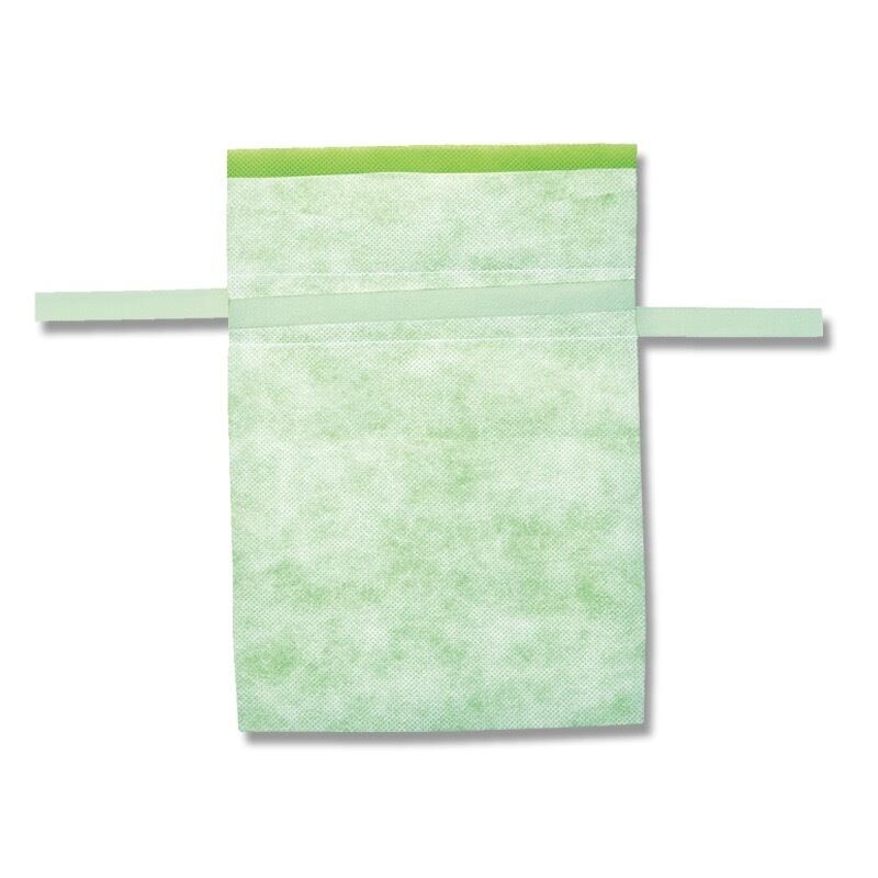 厚みの異なる不織布を2枚重ねた、やさしい風合いの巾着袋です。